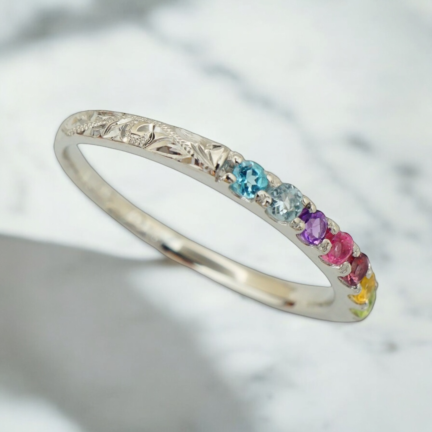 ひとつひとつの石が持つ豊かな色彩が、指元に鮮やかな虹を描き出し、身につける方の人生を明るく彩ります。