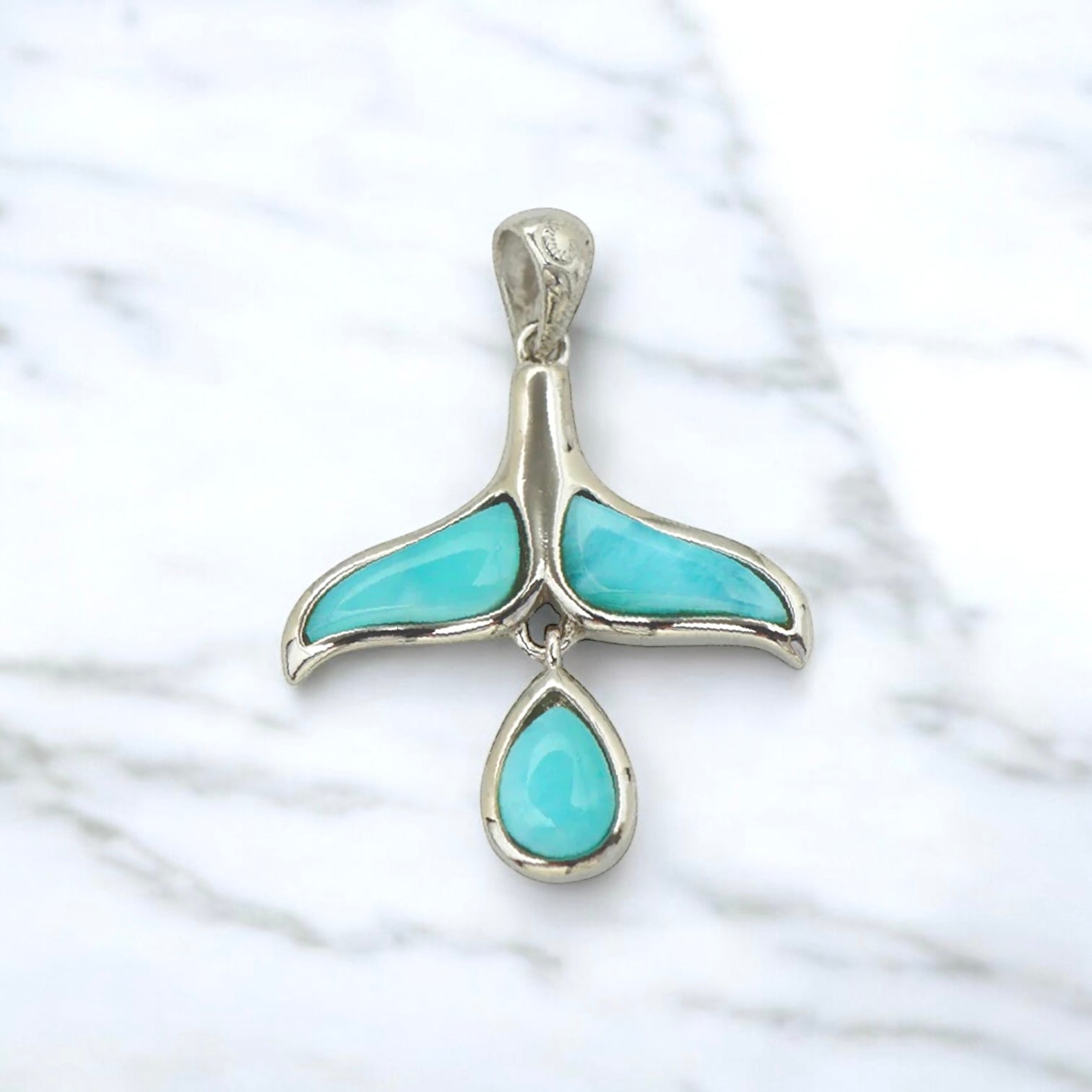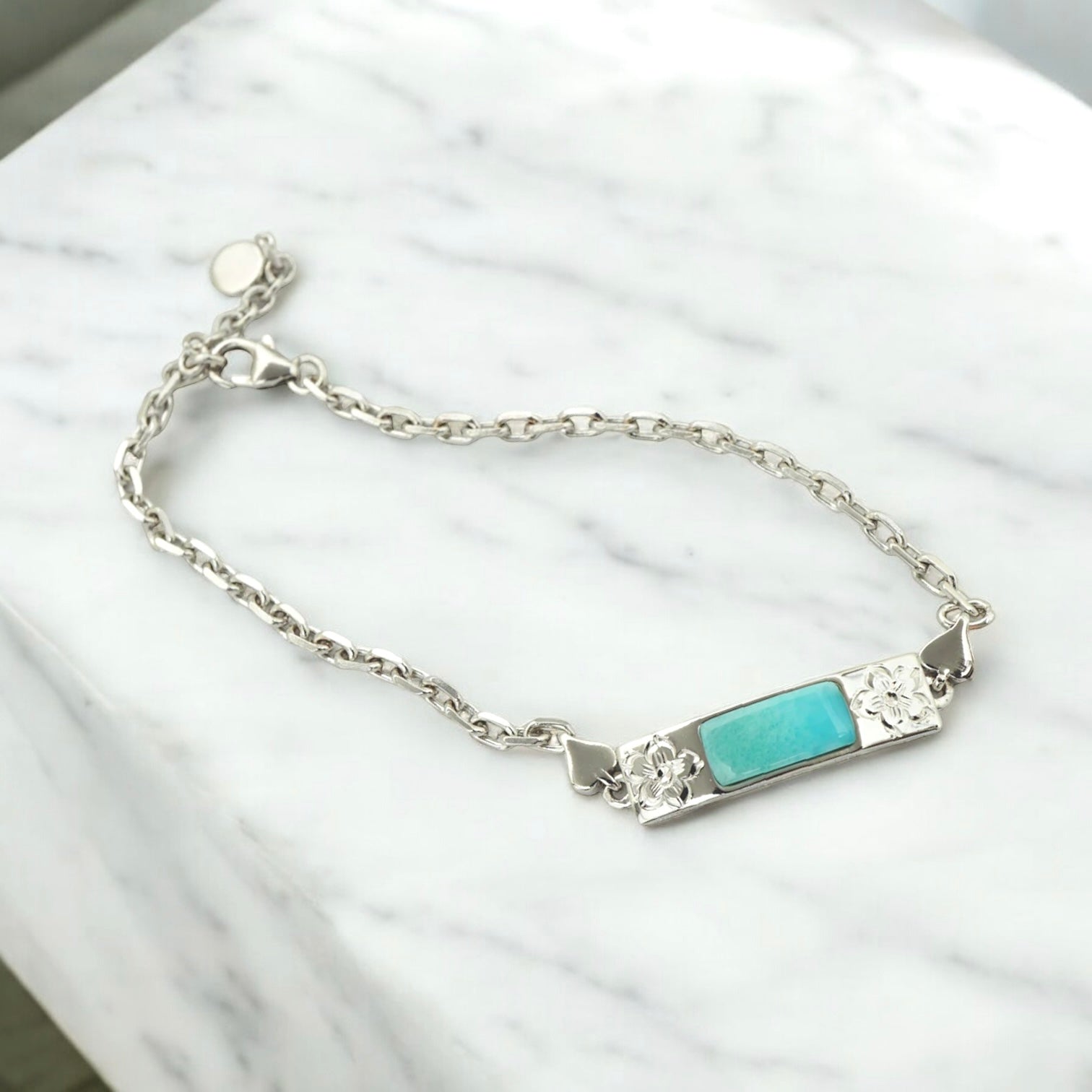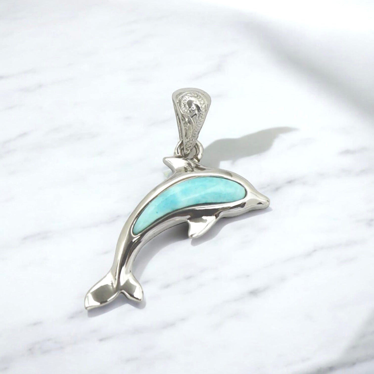 スクロールが彫られ、ポイントでラリマーが輝きます。