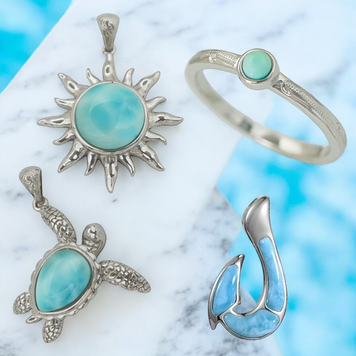 ハワイアンジュエリーとしてのラリマーは、あなたの大切な毎日をより輝かせ、幸せへと導いてくれるでしょう。